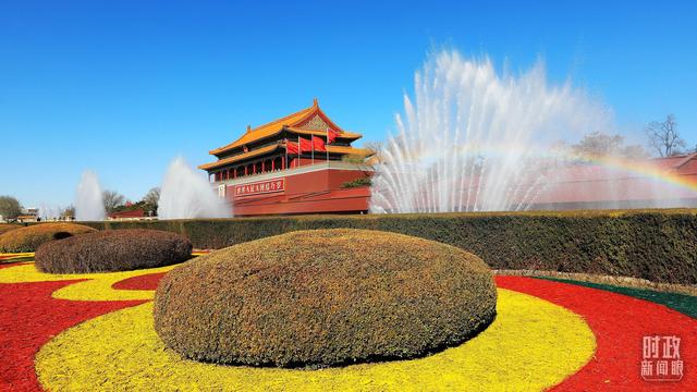 △天安門廣場(chǎng)上紅旗飄揚(yáng)。